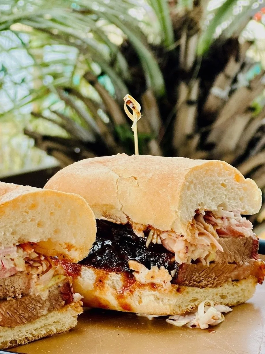 Brined for 24 hours, spice-rubbed, smoked and served dry or sauced
