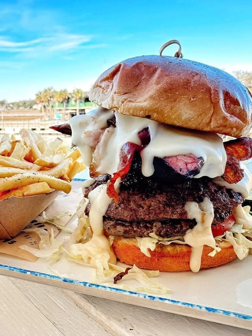 Explore the Saltwater Cowboys menu, featuring Southern-style seafood, BBQ, and Lowcountry favorites on the waterfront of Shem Creek in Mount Pleasant, SC. From smoked brisket and pulled pork to fried shrimp, tacos, and classic sides, our Charleston waterfront and seafood restaurant serves bold flavors with a laid-back coastal vibe. Whether you’re looking for Shem Creek restaurants with indoor dining or outdoor dockside views, Saltwater Cowboys is the perfect spot to enjoy a true taste of Mount Pleasant. Dine dockside at Saltwater Cowboys and taste why we’re a favorite among Shem Creek restaurants!