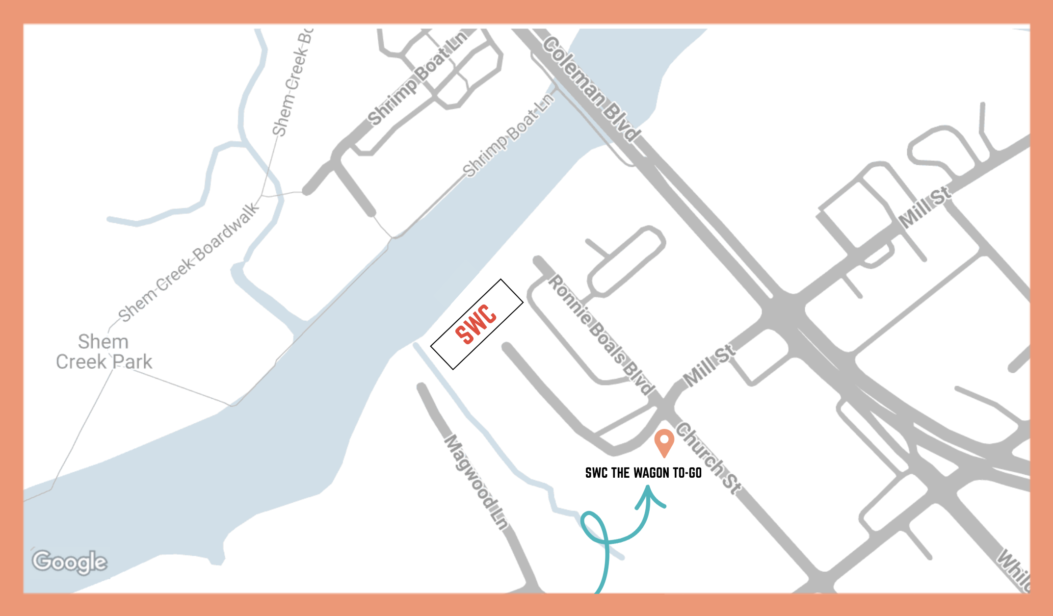 If you want to hang around and enjoy the SWC vibes, grab a seat on Shem Creek in Mount Pleasant. We’ll have a few picnic tables and plenty of fresh air. It’s the perfect spot to kick back creekside without missing a bite.
